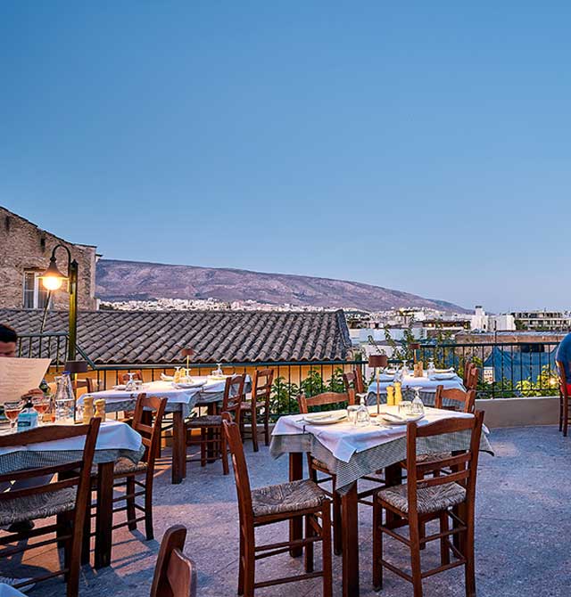 Κάτω από τον επιβλητικό Ιερό Βράχο της Ακρόπολης που δεσπόζει πάνω από το μέρος, το εστιατόριο “Thespis” πήρε το όνομά του από τον αρχαίο Έλληνα ποιητή Θέσπις που ίδρυσε την ελληνική τραγωδία κατά τον 6ο αιώνα π.Χ. Εφηύρε επίσης τον πρόλογο και τον προφορικό λόγο όντας ο πρώτος ηθοποιός που αναπαριστούσε έναν χαρακτήρα σε ένα έργο!